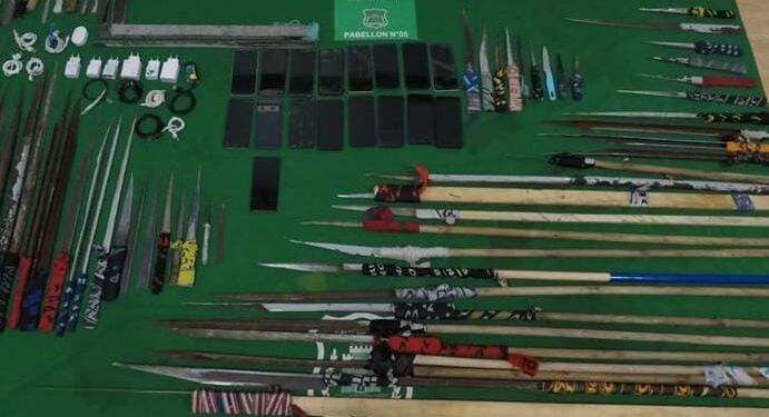 Los allanamientos, que se extendieron por alrededor de una hora, permitieron incautar una serie de elementos prohibidos por la administración penitenciaria, entre ellos: 64 armas blancas de fabricación artesanal, 35 teléfonos celulares, dos bolsas contenedoras de una sustancia vegetal color verde y 55 envoltorios de papel con, aparentemente, cannabis sativa y clorhidrato de cocaína.